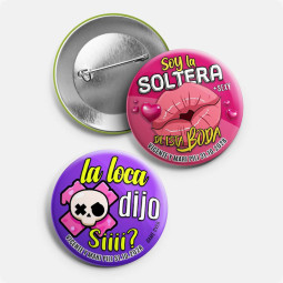 · Pack 50 Unds. Chapas imperdible personalizadas con nombres y fecha.